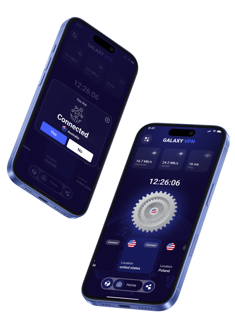 This is the Connection Screen of my VPN application. It shows real-time connection details in a clean and minimal layout so users can clearly understand their security status.